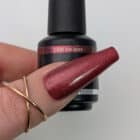 Draai hoofden met There She Goes, een warme rode koperen glittergel nagellak die zelfvertrouwen en charme uitstraalt. Je kunt haar misschien niet vangen, maar je kunt zeker deze prachtige kleur vangen – vet, boeiend en klaar om je nagels het middelpunt van de aandacht te maken.